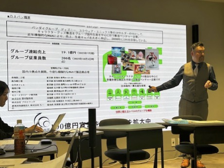 自社の取組をプレゼンする株式会社カネバンの金子弘行社長。
