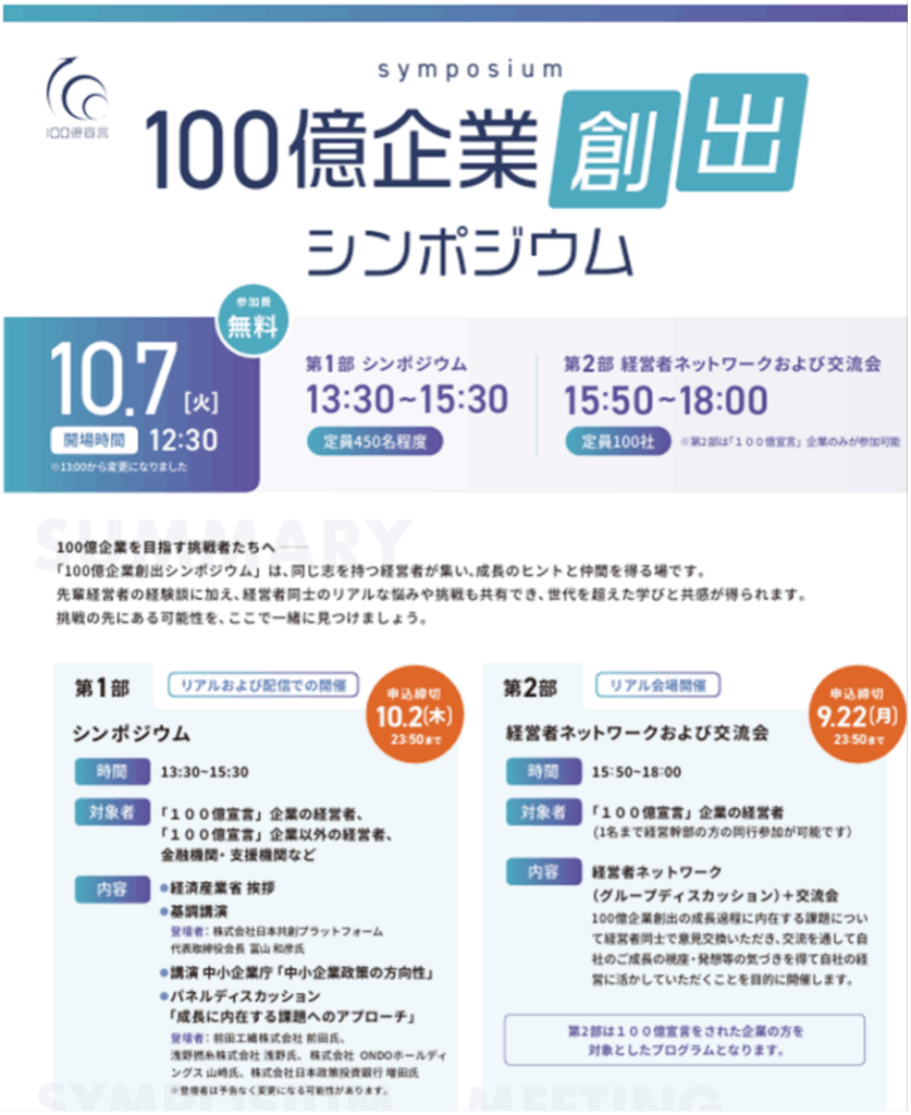 カネバンの金子社長のプレゼンは前田課長の「想い」と一致されたようで、翌週の10月7日(火)に開催された100億円企業創出シンポジウムのパネルディスッカションに飛び入り登壇するように激が飛びました。その意受けた金子社長。シンポジウムをジャックするインパクトで会場参加者を圧倒されました。(汗・汗・汗