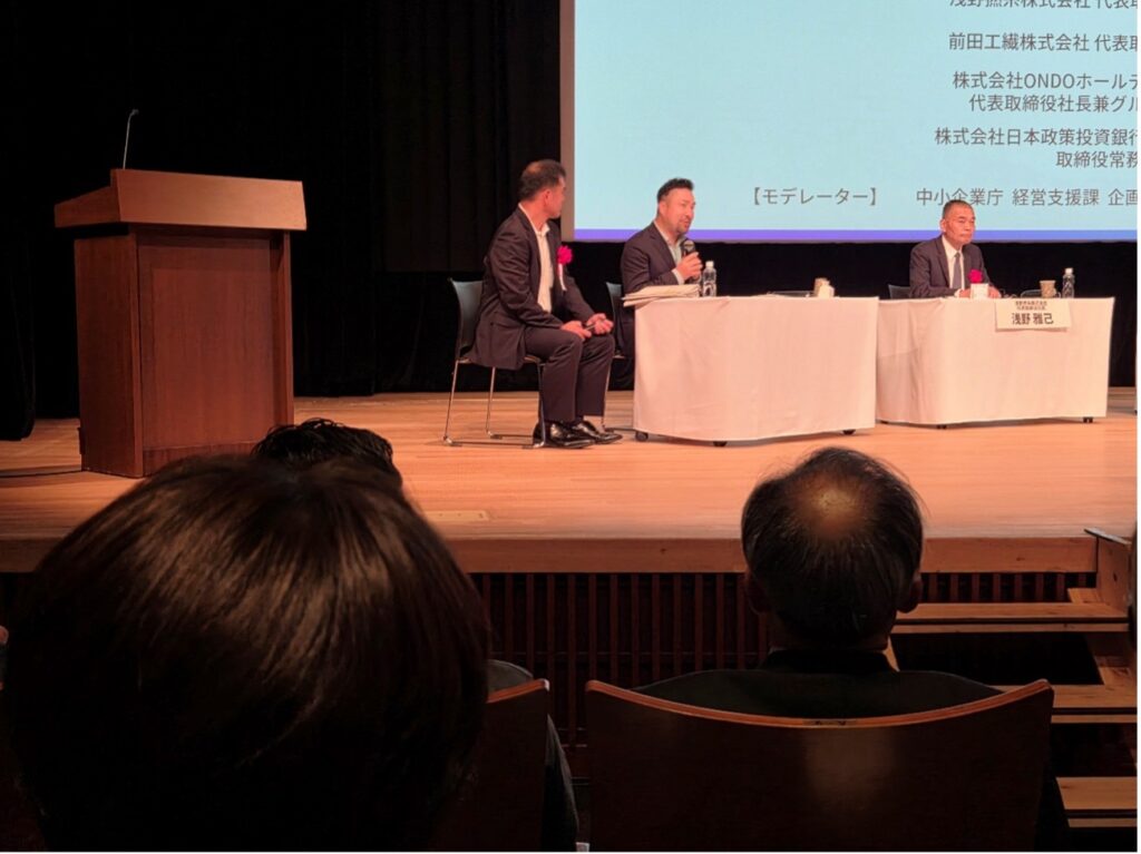 カネバンの金子社長のプレゼンは前田課長の「想い」と一致されたようで、翌週の10月7日(火)に開催された100億円企業創出シンポジウムのパネルディスッカションに飛び入り登壇するように激が飛びました。その意受けた金子社長。シンポジウムをジャックするインパクトで会場参加者を圧倒されました。(汗・汗・汗